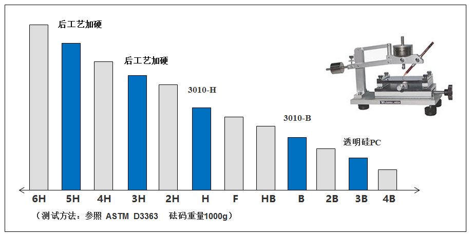 塑胶外貌硬度的界定,,,,,,,主要通过铅笔硬度(又称涂膜硬度铅笔测定法)来表述。。。。。。按工业标准,,,,,,,铅笔笔芯的硬度分为13级。。。。。。